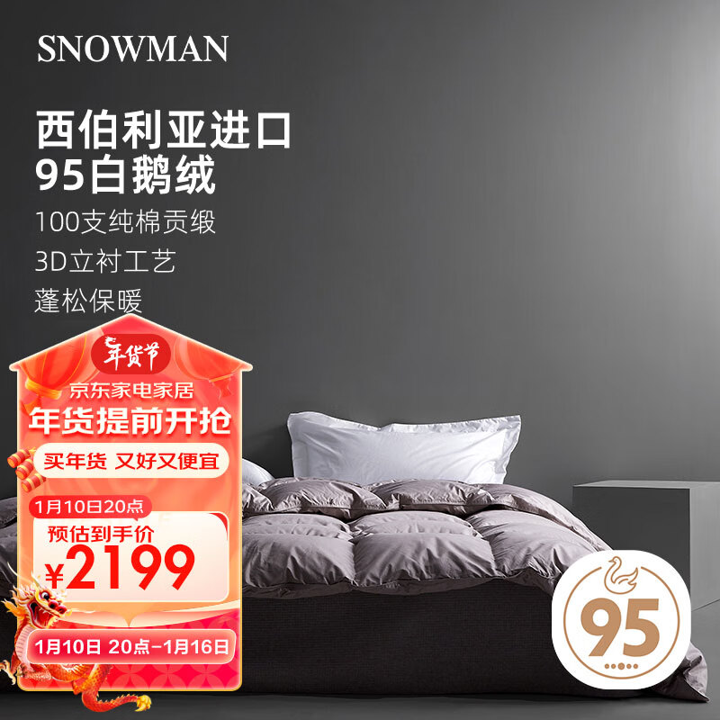 斯诺曼100支贡缎西伯利亚95%白鹅绒羽绒冬被 填充1500g220x240cm【灰】价格:2899.00元!