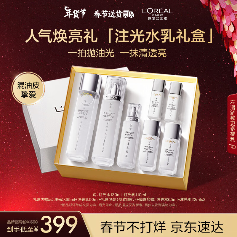 欧莱雅注光水乳套装 水杨酸嫩肤烟酰胺提亮 补水护肤品情人节新年礼物女价格:399.00元!