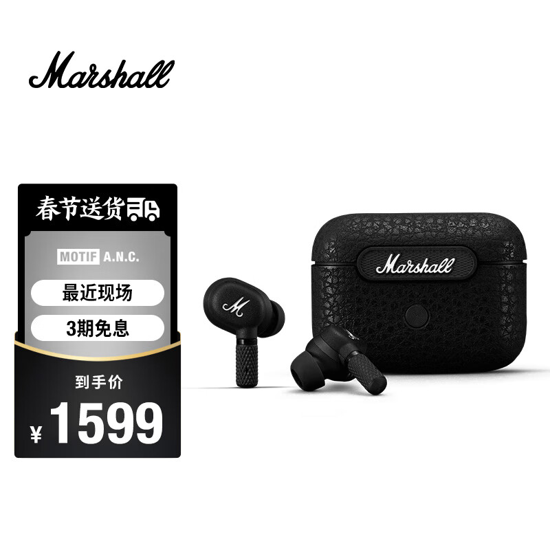 MARSHALL(马歇尔)MOTIF ANC耳机真无线主动降噪防水无线蓝牙耳麦 黑色价格:1599.00元!
