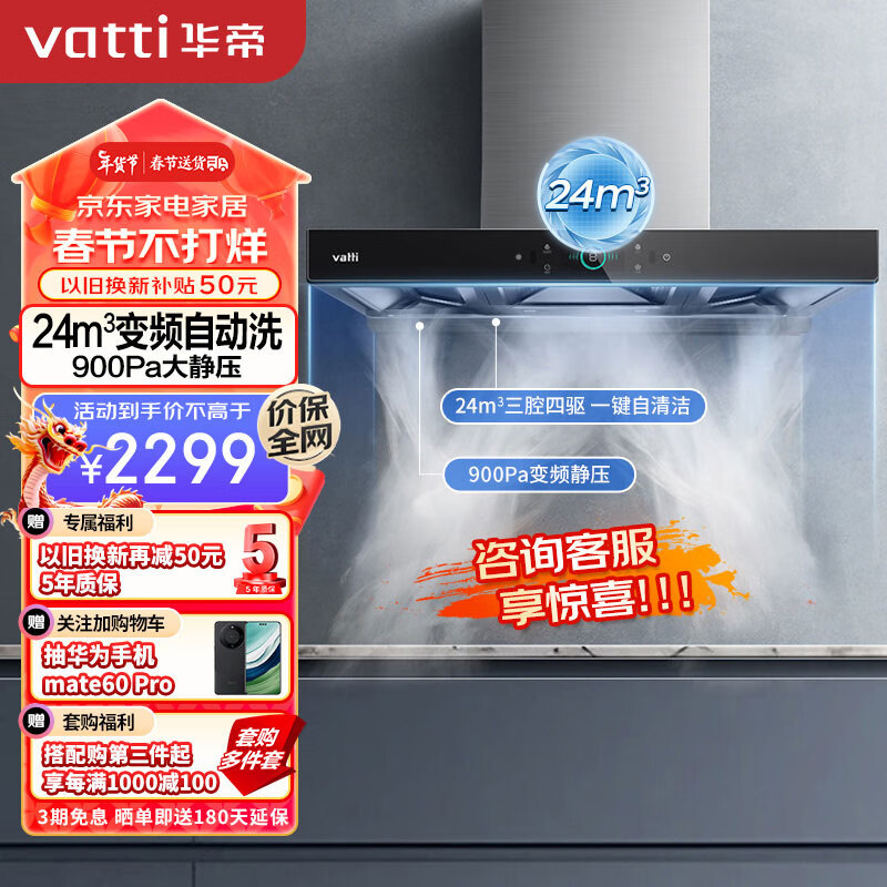 华帝(VATTI)抽油烟机顶吸三腔三吸变频创世S6欧式家用吸油烟机 24风量大吸力低噪挥手智控一键自清洁 i11206价格:2399.00元!