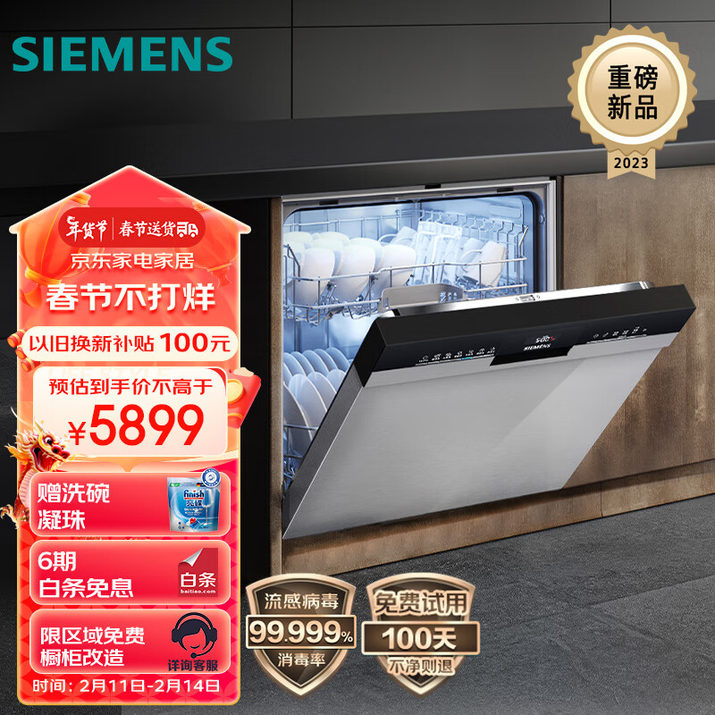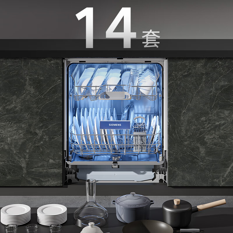 西门子14套大容量晶洗舱嵌入式洗碗机 加强烘干 智能除菌消毒 一级水效 SJ43HS01KC价格:5899.00元!