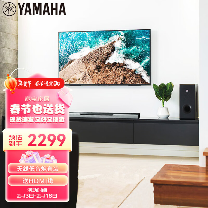 雅马哈(YAMAHA)YAS-408 回音壁5.1家庭影院蓝牙WIFI音箱家用客厅电视音响杜比视界DTS无线低音炮套装 银色价格:2299.00元!