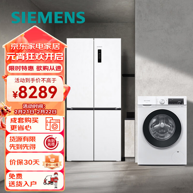 西门子(SIEMENS)KC502081EC+WG52A100AW 497升超薄十字++10KG滚筒除渍洗 变频冰洗套装价格:8289.00元!