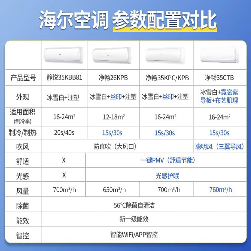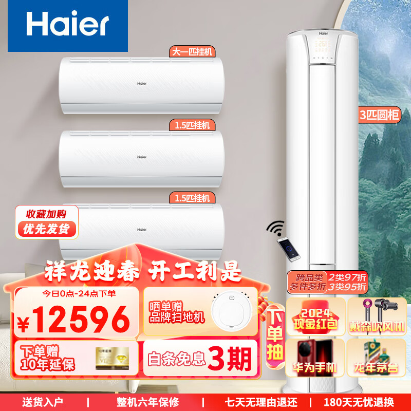 海尔(Haier)三室一厅空调套装 新一级能效变频冷暖空调 大1匹+1.5匹*2+3匹空调 WiFi智控 光感睡眠 以旧换新价格:12596.00元!