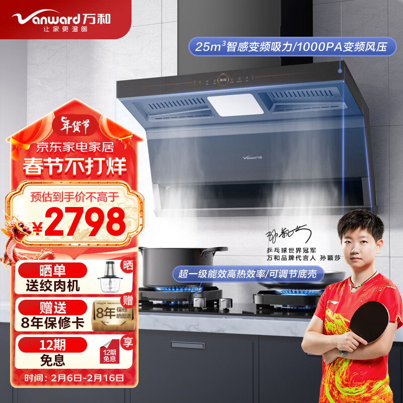 万和(Vanward)顶侧双吸三腔直流变频家用抽油烟机 68%高热效燃气灶具烟灶套装 25m3/min大吸力WL860+G6(液化气)价格:3098.00元!