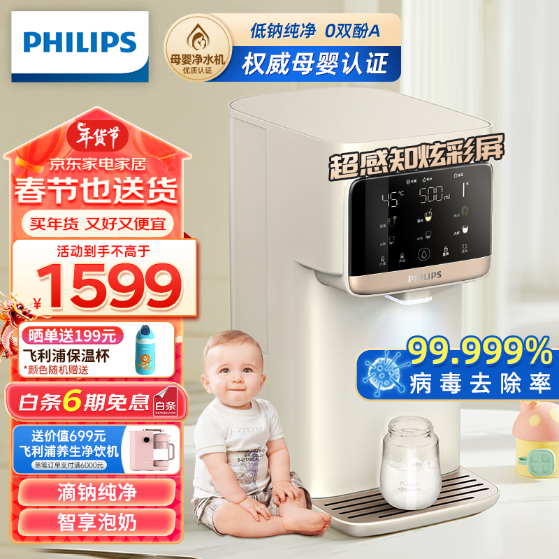 飞利浦家用台式免安装RO反渗透直饮水机 低纳泡奶机 水通道蛋白过滤净热一体机 【母婴级净饮机】ADD6820价格:1599.00元!