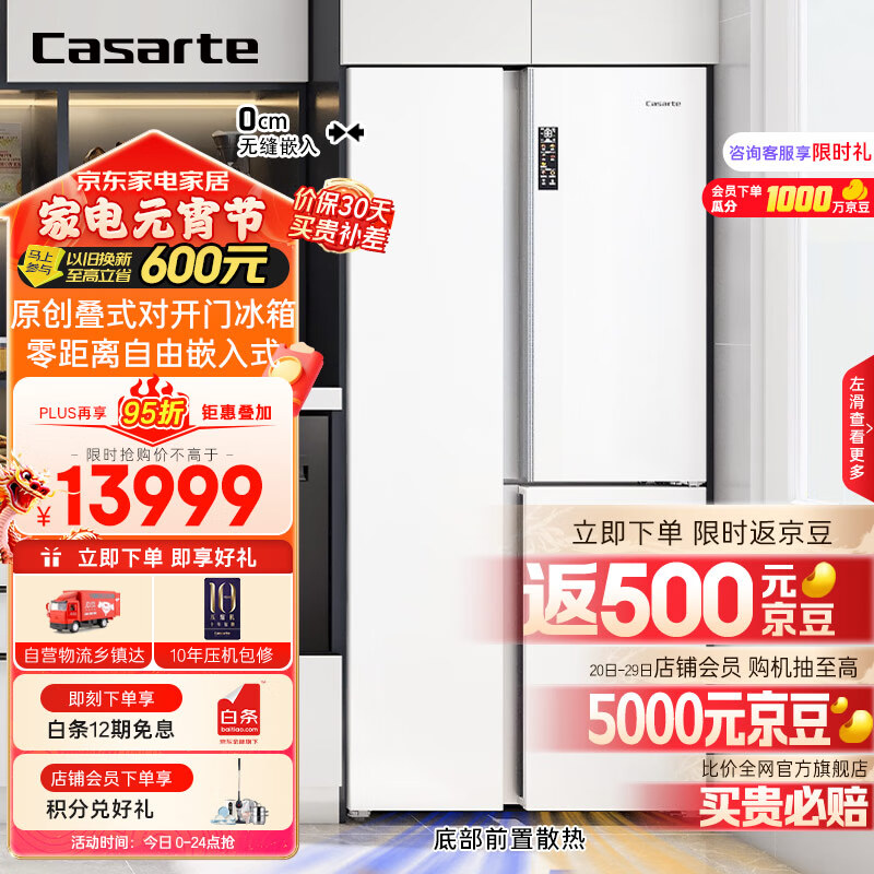 卡萨帝(Casarte)603升纯白系列叠式对开门超薄零嵌入式大容量双开门冰箱家用电冰箱变频BCD-603WGCRTM7WKU1价格:13999.00元!