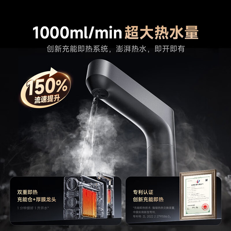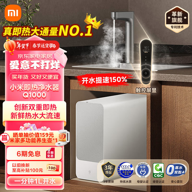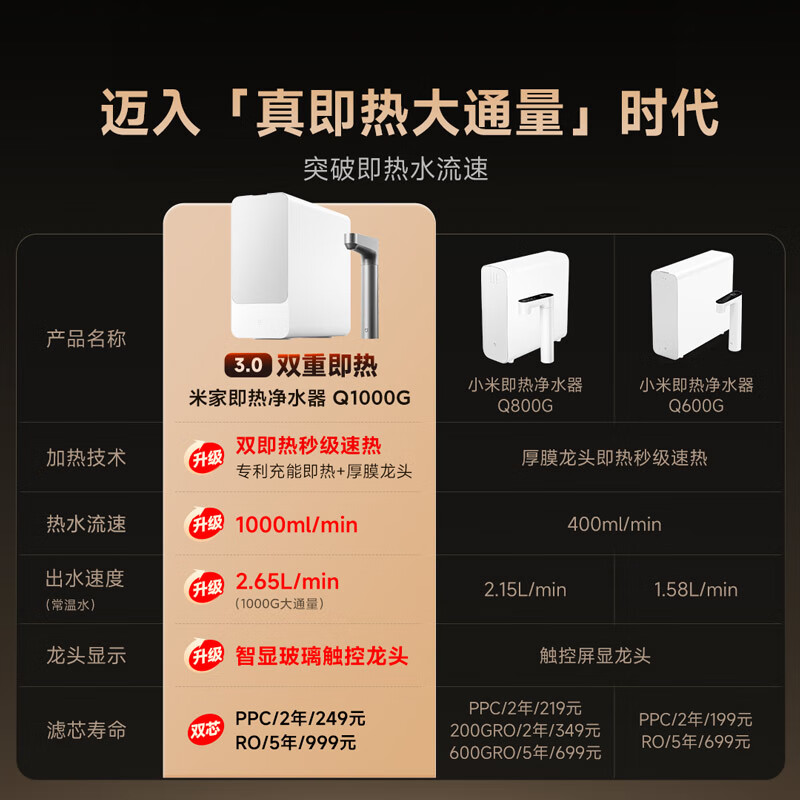 米家小米【23年旗舰款】加热直饮净水器 Q1000G大通量 厨下式反渗透直饮机 无罐真即热 智显玻璃龙头价格:2999.00元!