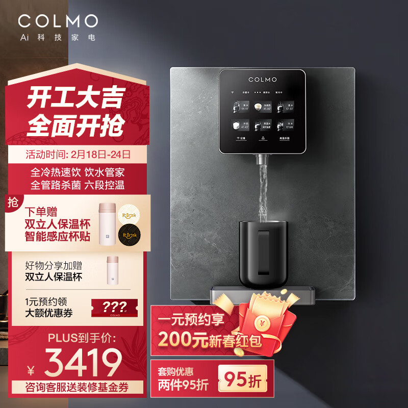 COLMO家用净水器伴侣管线机 全通量匹配 高温杀菌智能感应取水 制冷加热直饮一体 饮水机 CWG-DA03价格:3599.00元!