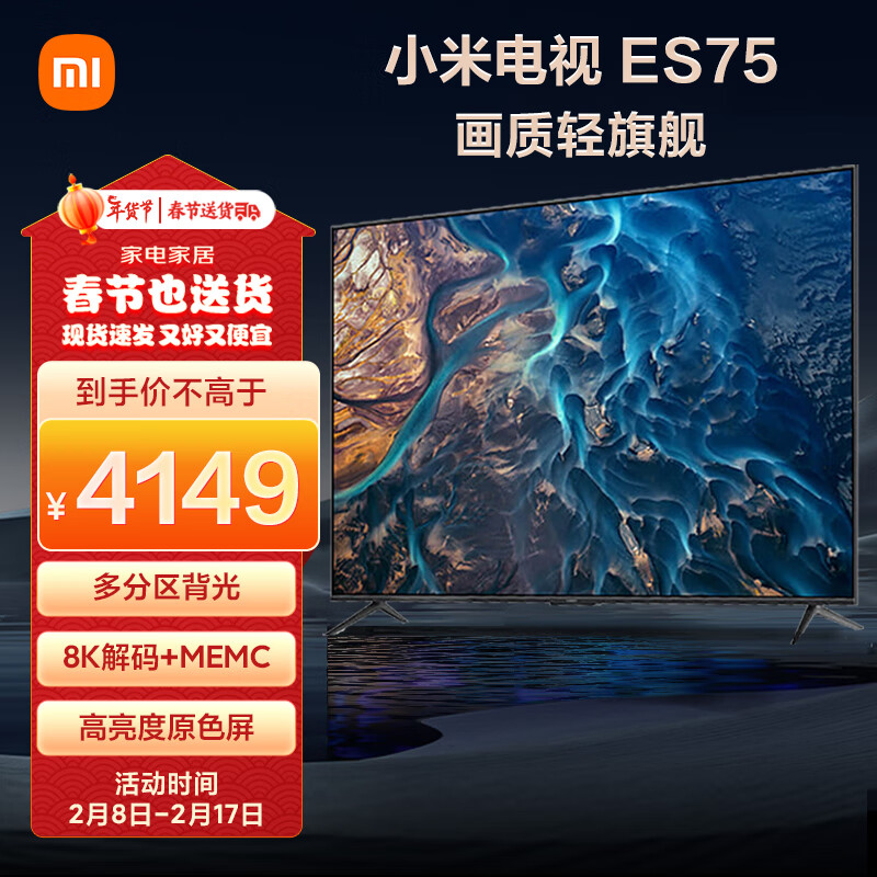 小米电视 ES75 75英寸 4K超高清 多分区背光 远场语音 金属屏智能平板电视机L75M7-ES以旧换新价格:4046.00元!