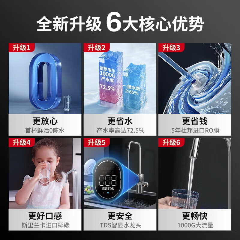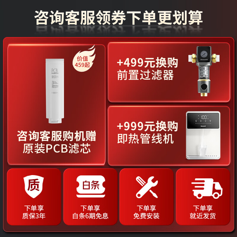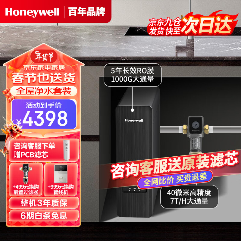 霍尼韦尔(Honeywell)贝加尔系列全屋净水器套装家用厨房直饮净水机RO反渗透纯水机1000G大通量+自动刮洗前置过滤器价格:4398.00元!