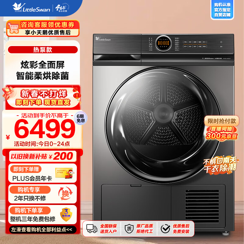小天鹅(LittleSwan)烘干机 热泵式家用干衣机 杀菌除螨 蒸汽免熨 晒被子程序 10公斤 智能家电 TH100-H36WT价格:5499.00元!