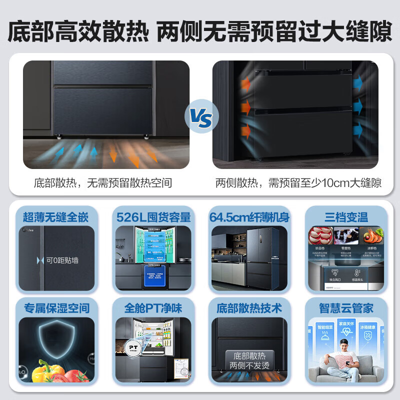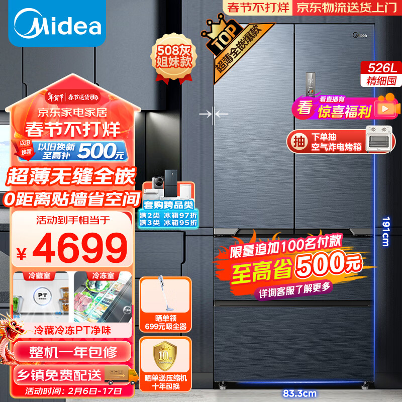 美的(Midea)无缝全嵌系列552法式多门四开门超薄零嵌入式大容量家用智能变频一级能效电冰箱MR-552WUFPZE价格:5699.00元!