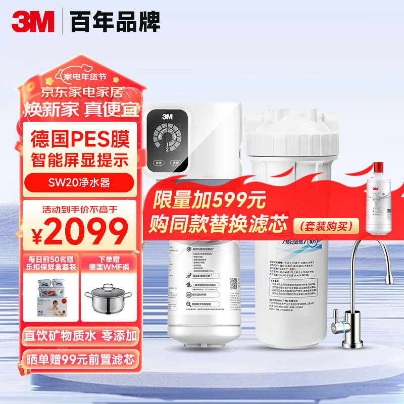 3M净水器家用净水机0废水矿物质直饮智能2.2L/分大流量700G过滤器 SW20价格:2149.00元!