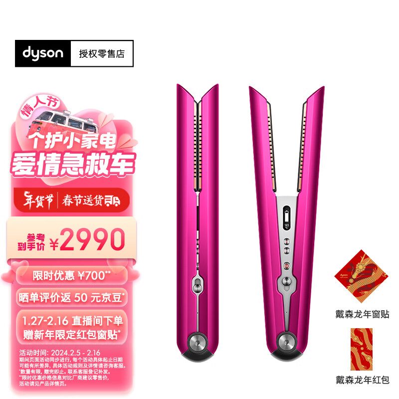 戴森(DYSON) Corrale HS03 无绳美发直发器 卷直两用 紫红镍色价格:2990.00元!