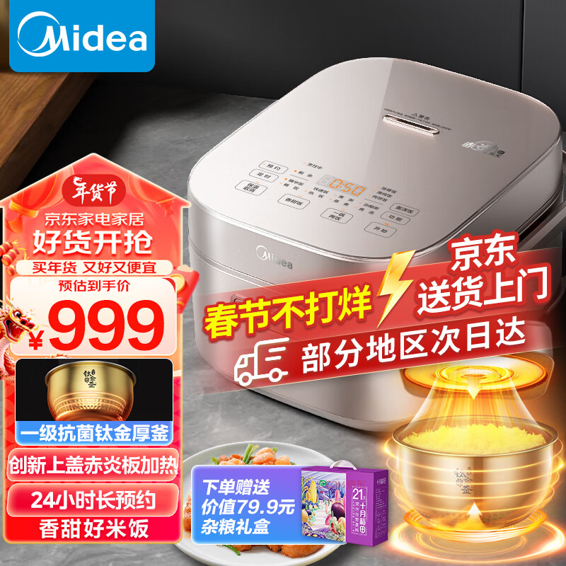 美的(Midea)赤炎炭火电饭煲Pro电饭锅家用4L立体IH电磁加热一键双层快速煮钛金鼎釜智能电饭煲MB-CFB4089H价格:999.00元!