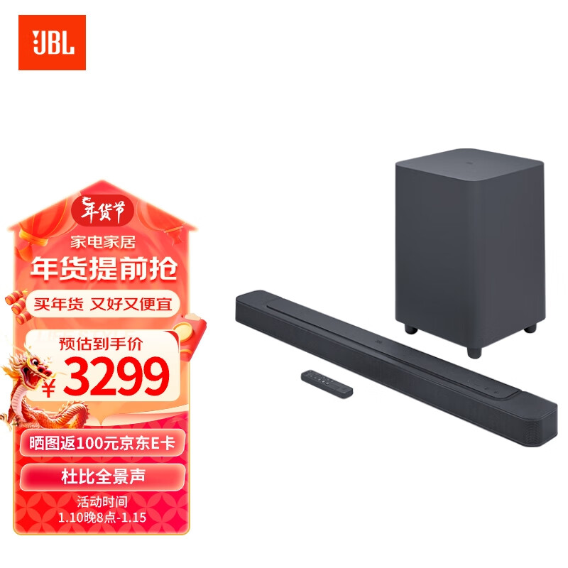 JBLBar500 5.1杜比全景声 回音壁音响 家庭影院 电视音箱套装 客厅无线环绕蓝牙音响 Soundbar价格:3599.00元!