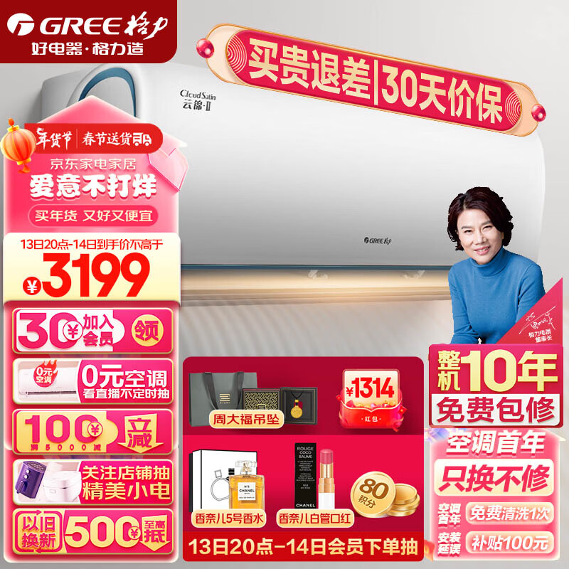 格力(GREE)空调 京东小家智能生态 大1匹 云锦Ⅱ 新1级能效 壁挂式卧室挂机KFR-26GW/NhAd1BAj价格:3199.00元!
