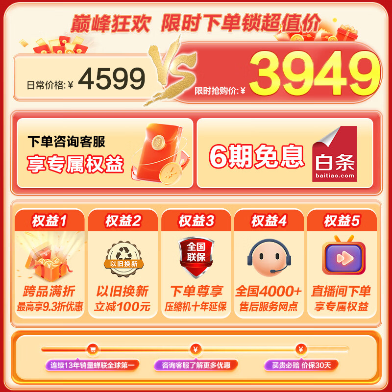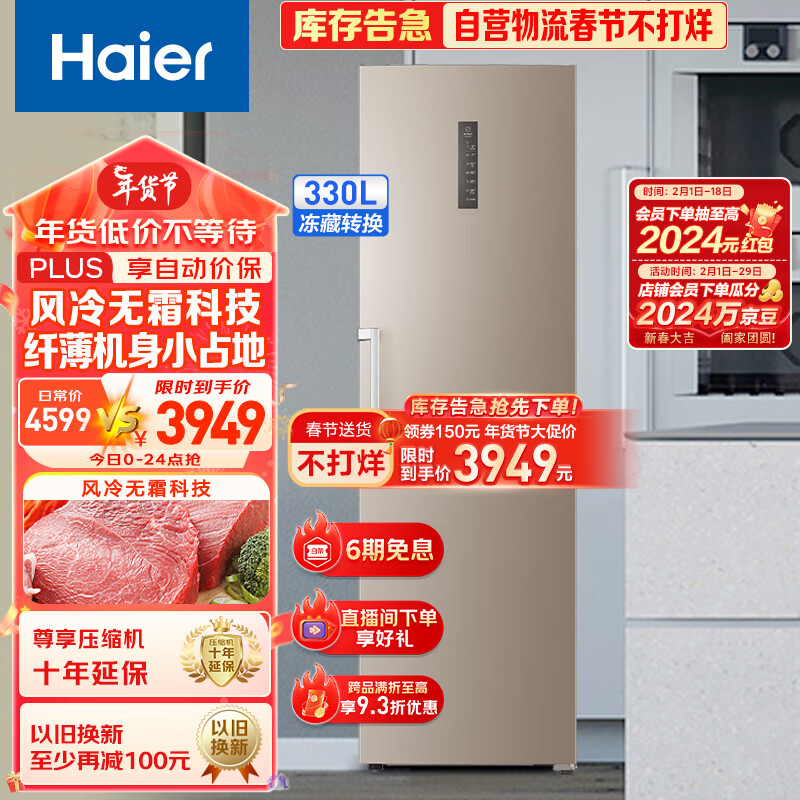 海尔(Haier)330升全冷冻小冰箱风冷无霜大容量家用冷藏冷冻立式冰柜海鲜速冻囤货BD-330WEPTU1以旧换新价格:4099.00元!