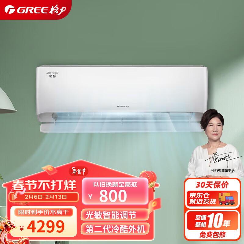 格力(GREE)1.5匹 京恬 新一级能效 变频冷暖 净菌自洁 WIFI智控 壁挂式空调挂机 KFR-35GW/(35551)FNhAa-B1价格:4299.00元!