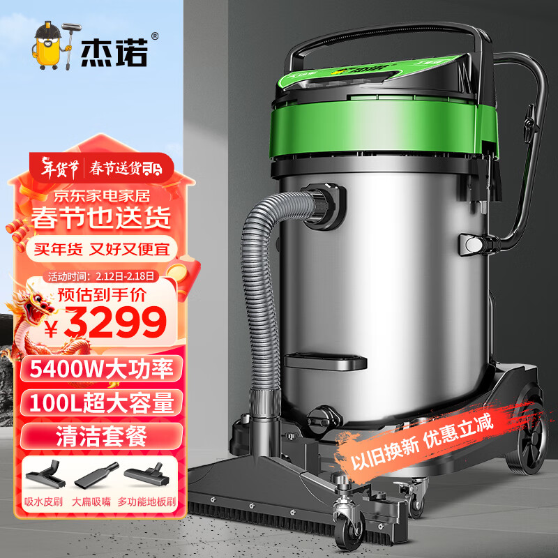 杰诺5400W大功率强大吸力干湿两用商用工业吸尘器工厂车间大型厂房粉尘吸水机JN-301T边推边吸价格:3599.00元!