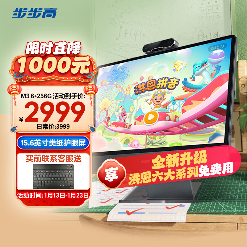 步步高学习机M3 6+256G 洪恩免费用 科学早教系统 15.6英寸护眼屏 儿童学习机 学生平板 小初高同步价格:3999.00元!