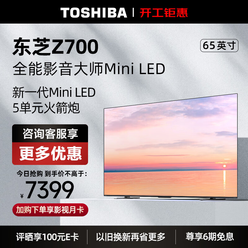 东芝电视65Z700MF 65英寸高端Mini LED 4K144Hz高刷屏65w火箭炮音响 客厅液晶平板游戏电视机 以旧换新价格:7399.00元!