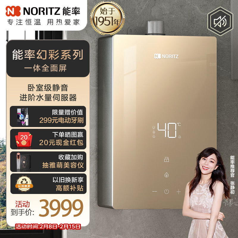 能率(NORITZ)燃气热水器13升屏玻璃面板 搭载水量伺服器 一键节能天然气GQ-13EP5AFEX(JSQ25-EP5A)防冻价格:3999.00元!
