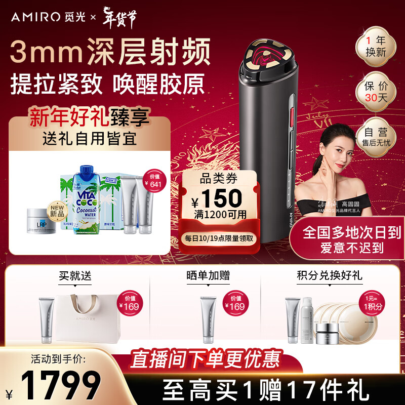 AMIRO觅光 深层射频美容仪 面部脸部提拉紧致瘦脸 眼部淡纹嫩肤 新年 生日礼物送女生送老婆 PRO云影黑价格:2999.00元!