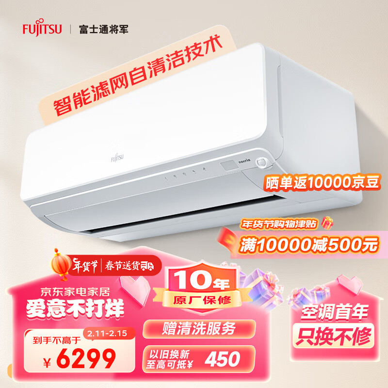 富士通 15-22㎡适用 1级能效 1.5匹 诺可力U系列空调 以旧换新 变频挂机ASQG12KUCA (KFR-35GW/Bpkua)价格:6299.00元!