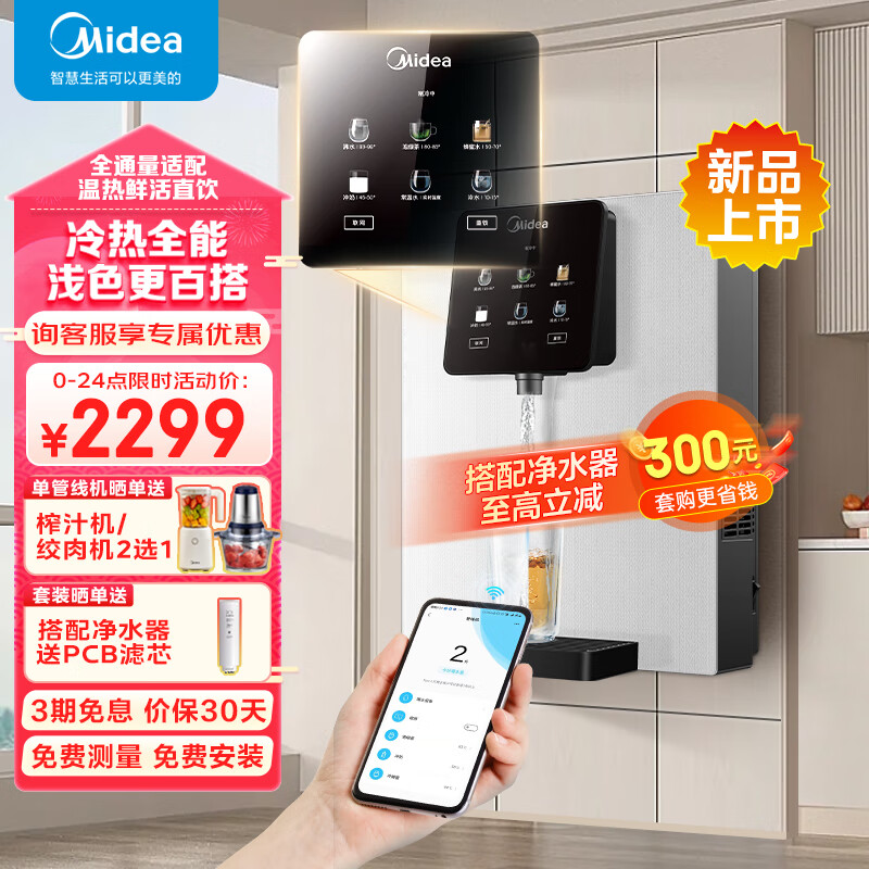 美的(Midea)家用净水器伴侣 白月光管线机 全通量适配 6段控温 智能触控 壁挂式直饮机 速热饮水机 MG902-D价格:2299.00元!