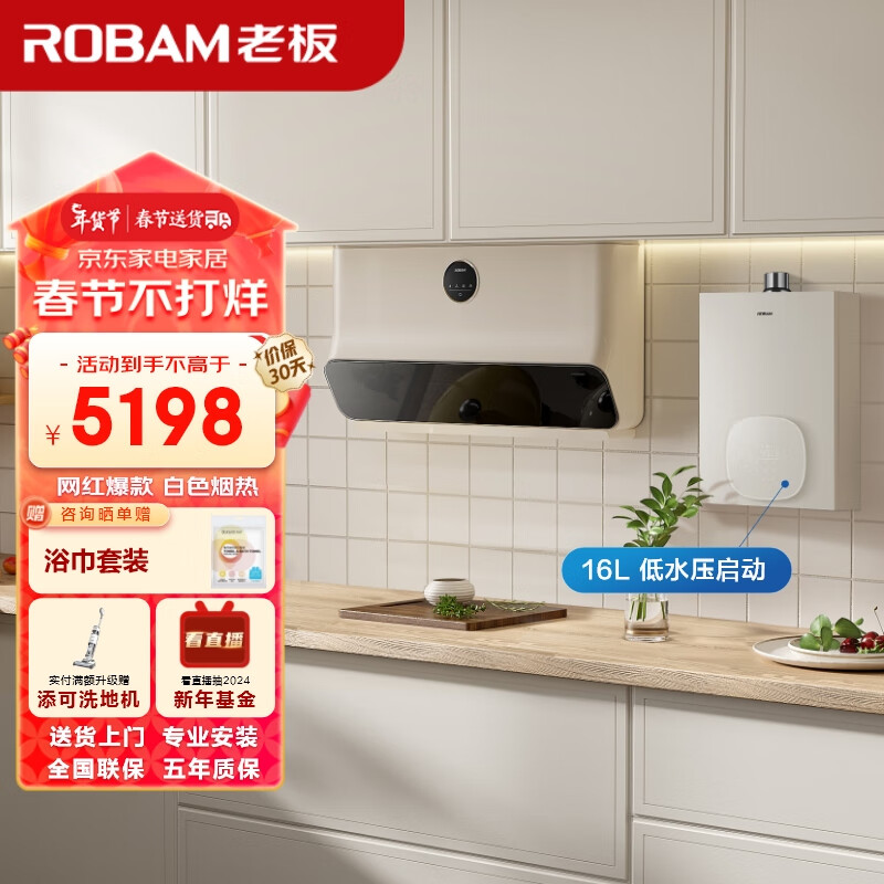 老板(Robam)抽油烟机空间大师A3S白色新物种超薄近吸23风量变频吸油烟机家用16升燃气热水器22A3S+HT322A-16价格:5198.00元!