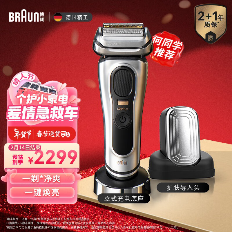 博朗(BRAUN)9系Pro+电动剃须刀整机德国进口往复式剃须刀刮胡刀男士送男友送老公情人节礼物送男友价格:2299.00元!