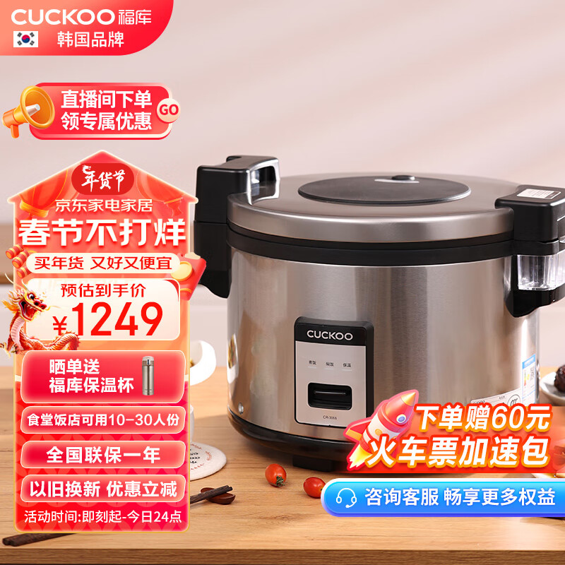 福库CUCKOO韩国品牌商用大容量商用电饭煲不糊底不粘锅学校食堂饭店餐厅大电饭锅16L年货30人份CR-3055价格:1249.00元!