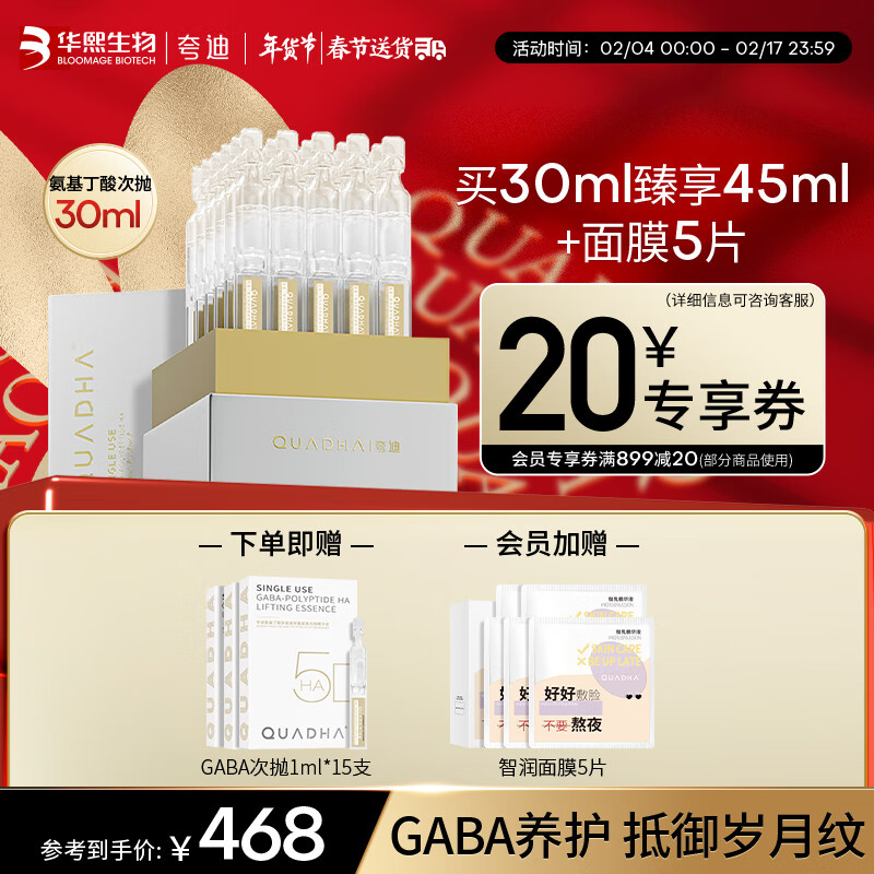 夸迪氨基丁酸多肽玻尿酸次抛精华液1ml*30支紧致淡纹护肤品女gaba价格:699.00元!