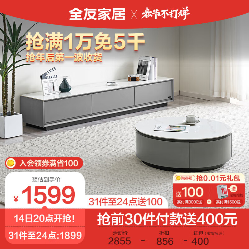 全友家居 岩板茶几电视柜组合现代简约客厅家用圆形茶几边几DW1055B价格:2855.71元!