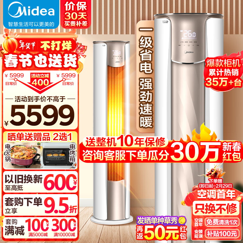 美的(Midea)空调 2匹 锐静 新一级能效 变频冷暖 自清洁 客厅空调 立式空调 KFR-51LW/N8VHC1Ⅱ【多仓直发】价格:5599.00元!