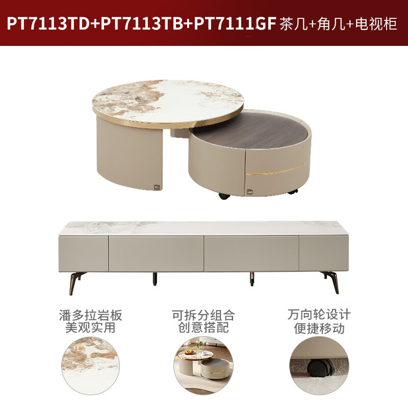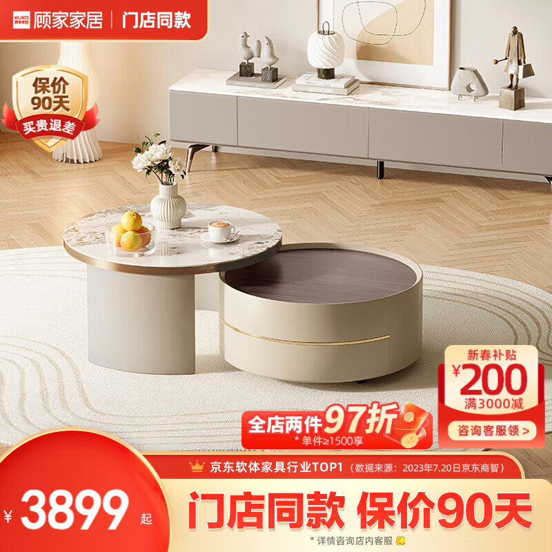 顾家家居(KUKA)现代意式岩板茶几客厅茶几电视柜PT7113茶几+角几+电视柜价格:3899.00元!