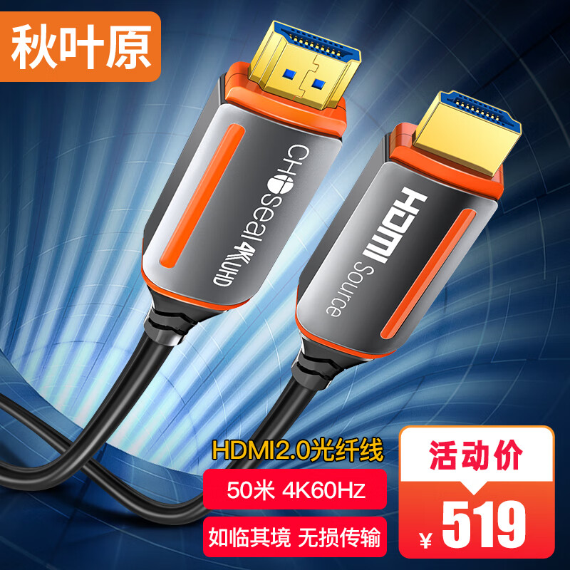 秋叶原 光纤HDMI线2.0版 4K60Hz发烧级高清线3D视频线 电脑连接投影仪显示器工程装修连接线 50米 QS8511价格:569.00元!