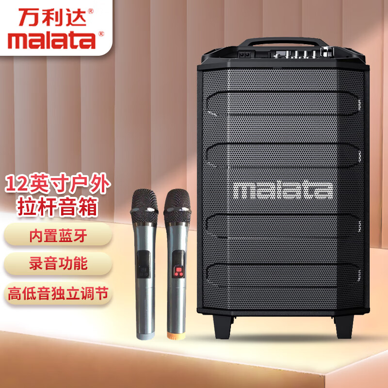 万利达(Malata)家庭家用k歌蓝牙大功率12英寸低音炮广场舞音响音箱户外移动便携式带双麦克风价格:713.15元!
