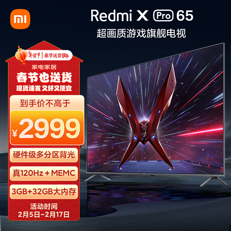 小米Redmi 游戏电视X Pro 65英寸电竞原色屏多分区背光 120Hz高刷 智能电视L65R9-XP 以旧换新价格:2998.00元!