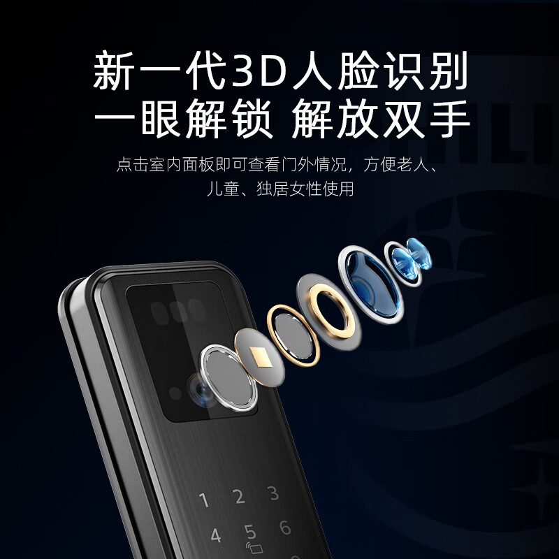 附加功能:防小黑盒,按门铃抓拍,虚位密码,防撬报警