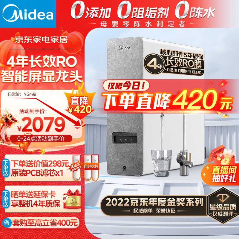 美的(Midea)净水器家用净水机白泽800G 厨房厨下式净水器 4年长效RO反渗透直饮机过滤器 0陈水 京东小家2L/分价格:2079.00元!