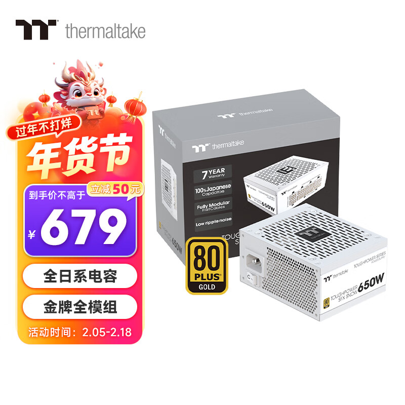 Thermaltake(Tt)额定650W 钢影Toughpower SFX 白色 电脑电源(80PLUS金牌/全模/全日系电容/附ATX转接架)价格:679.00元!