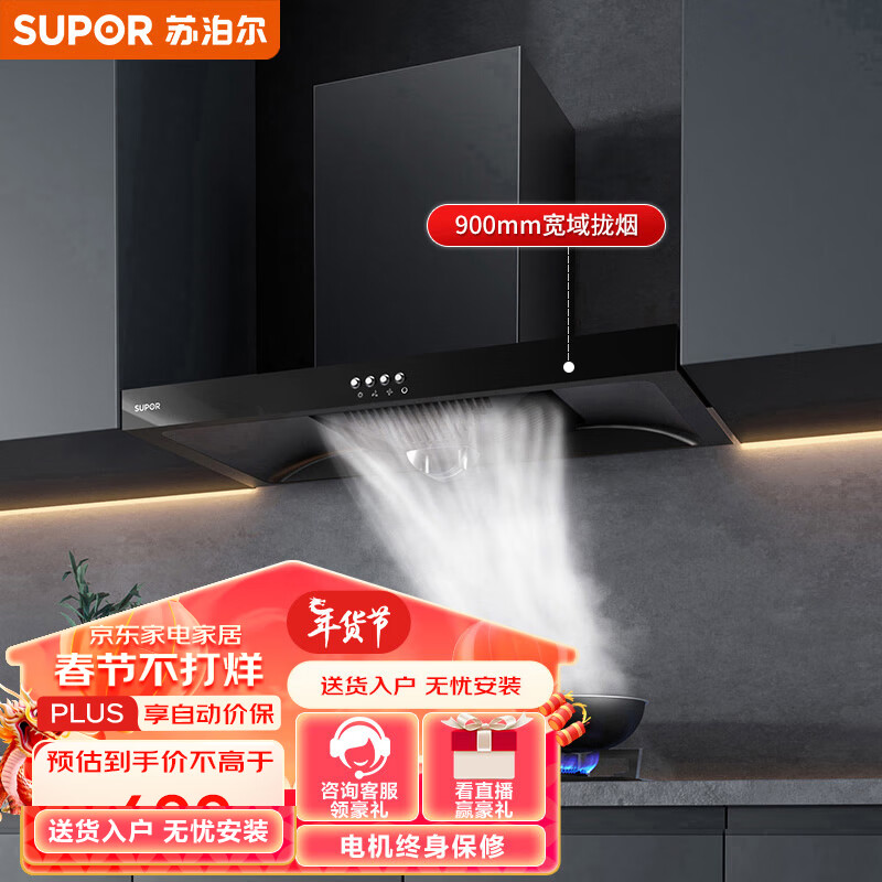 苏泊尔(SUPOR)排油烟机 宽域拢烟大吸力油烟机 家用易清洁欧式顶吸抽油烟机 经典按键操控吸油烟机 DT10价格:699.00元!