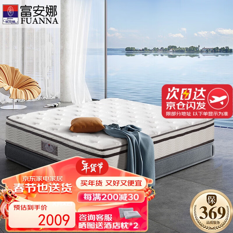 富安娜床垫 软硬适中天丝面料乳胶床垫独立袋装弹簧床垫 1.8*2米 静享价格:2339.00元!