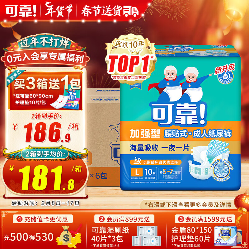 可靠(COCO)夜用加强型成人纸尿裤臀围95-120cm L60片产妇纸尿裤尿不湿价格:256.00元!
