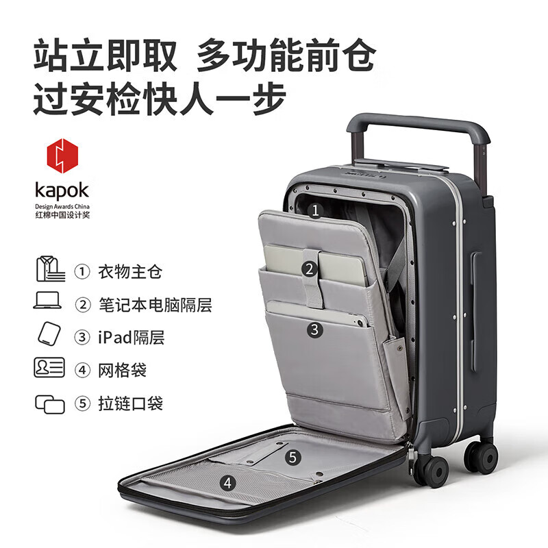 米熙前开盖宽拉杆箱子行李箱大容量商务托运密码箱男女24英寸矿岩灰75价格:799.00元!