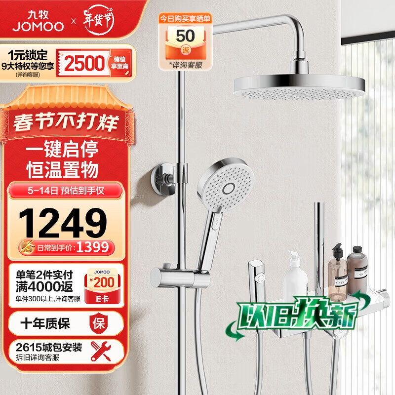 九牧(JOMOO)花洒全套淋浴套装大置物恒温除垢喷枪淋浴器26188-768/1B-1价格:1399.00元!