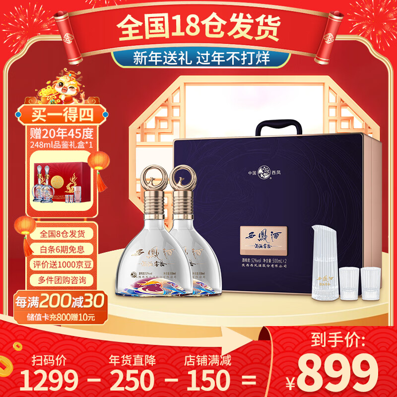 西凤酒 25年52度紫气东来·秋兴赋纯粮凤香型白酒年货送礼盒装500mL*2价格:1049.00元!